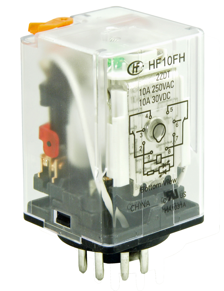 HF10FH006A2ZDT HONGFA PLUG IN RELAY 6VAC 2CO 10A HF10FH/006A-2ZDT 2C - 2 Pole Changeover 6VAC 2.7VA 7.2 10 AMP 3.9 x (1�10%) 4.8 1.8